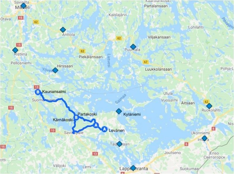 In south the tour can continue to Taipalsaari and Lappeenranta, in north via Ristiina to Mikkeli and Puumala. On the road it is recommendable to use a mobile map e.g. this Outdooractive map of Great Saimaa Tour.
