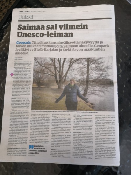 Kärnäkoski sai Unesco- leiman. Juttu on julkaistu Etelä-Saimaa lehdessä 23.4.2021.